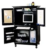 Home Styles Hampton Computer Armoire complete with cork board, dry erase board, file holders and more! No spare room to make into an office? No problem! With this Computer Armoire, you can make a small area in your living room, family room or bedroom your self-contained office. Easily use your computer whenever you want. Then store it all away when you have guests over, or you simply want your work to be out of sight and out of mind for awhile. Take a look: All wood and wood veneer construction; Louvered doors; Top compartment has space for up to a 32" computer monitor; Cork board on the inside of one door and dry erase board on the other; Base features slide out keyboard tray and printer shelf; Base also has space for your computer; Door of base features file holders; Measures 2'111/2" x 1'111/2" x 4'81/2". Some assembly required. State Finish. Order yours now! This item is shipped by commercial carrier curbside. Unloading is the customer's responsibility, including off the back of the truck. Home Styles Hampton Computer Armoire Features: Hampton Computer Armoire with Louvered Doors - Black., HOME STYLES Read More