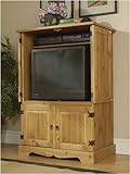 Santa Fe Armoire - The rustic simplicity of Southwestern design transforms any room into a comfortable haven. Sturdily constructed of distressed solid pine with a hand-applied carnuva wax finish and hand-finished rustic hardware. Consider it your complete entertainment center. Features four raised-panel doors that fold back against the unit for full TV viewing. Enclosed top area holds up to a 32" TV with an adjustable shelf for a VCR above the TV. The TV shelf is 20" from the floor. The bo (6213LP ) Read More