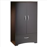 3159038 South Shore Door chest, Contemporary, Chocolate. This armoire - entertainment center-style chest with double doors and blanket drawer has a rich dark chocolate finsish, that gives it its timeless basic look and will complement your 6-piece bedroom furniture ensemble. Features: Armoire with double doors and blanket drawer coordinates with Step One collection in Chocolate or Maple, Manufactured from eco-friendly composite wood carrying the Forest Stewardship Council (FSC) certification, Space behind doors is separated in 6 cases for storage and has 1 spacious drawer; 2 adjustable shelves per side, Matte chrome-finish handles; lifetime-warranted Sintec drawer glides with child-friendly safety catches, Measures 30 inches wide by 20 inches deep by 54 inches high; 5-year warranty; easy assembly required Read More