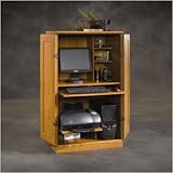 Sauder Orchard Hills collection computer armoire is constructed of dense engineered wood with a durable laminate finish in Carolina Oak. Traditional American country style provides endless versatility with finely detailed moldings, raised panel doors, and brass-finish hardware. Computer armoire is a space-saving cabinet that conceals monitor, printer, CPU, speakers, and more. Slide-out keyboard/mouse shelf and printer shelf with metal runners have safety stops. Dedicated storage area accommodates a vertical CPU tower. Two adjustable shelves provide versatile storage options. Shelves can be assembled to accommodate left or right configuration. To care for your furniture, simply clean with your favorite furniture polish or a damp cloth, then wipe dry. Ships ready to assemble. Features: Sturdy construction with Carolina Oak finish, Slide-out keyboard/mouse shelf and printer shelf, Dedicated storage area for vertical CPU tower, Two adjustable shelves, Ships ready to assemble more...