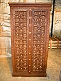 Antique Armoire Indian Furniture Teak Wood Hand Carved Rustic Cabinet from Mogul Interior