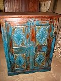 Antique Blue Armoire Rustic India Furniture Teak Wood Hand Carved Cabinet 49x37 from Mogul Interior