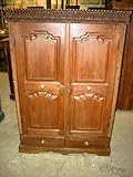 Beautifully decorating armoire and hand carved in teak.Rich with culture the cabinet belonging to the British raj as well as the rustic charm from India.The carving on the cabinet door are door from the tradition of vastu culture which is the indian art of the interior design . Features: Hand carved teak wooden antique furniture armoire from india., Eclectic addition to your interiors the armoire has hinged doors that fold on the side., Crown molding intricately carved at top of the armoire., Beautiful teak wood with a rich patina.Two drawers on the bottom of armoire., Our hand carved rustic wood cabinet is uniquely designed, which will give you affordable solutions for any room in your home more...