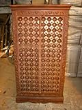 Beautifully crafted and Rich with culture the cabinet has old doors accented with brass that belong to Havelis of Rjasthan.The brass on the cabinet doors were used to ground you to earth and take from the traditions of Vastu culture which is the Indian art of the interior design. Features: Rustic Armoire Brass cladded Hand Carved Teak Wood Furniture From India., Eclectic addition to your interiors the armoire has hinged doors that fold on the sides.This teak armoire is made from durable recycled teak wood., Hand carved rustic wood armoire furniture is uniquely designed, giving you affordable solutions for any room in your home and provide years of comfort and enjoyment., Crown molding and carving add to the classic style of the armoire.This beautiful in an antique warm brown finish with brass accents all over the door., Exterior Dimensions : Height 60" x Width 30" x Depth 20"(add 2 inches for crown molding) more...