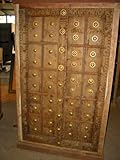 Beautifully decorating armoire and hand carved in teak.Rich with culture cabinet belonging to the British raj as well as rustic from India.The carving on the cabinet door are door from the tradition of vastu culture which is the india art of the Indian design and color and occur patina give the cabinet earthy touch. Features: India furniture rustic furniture armoire with brass accent carving., This cabinet has two doors with scalloped arch. Eclectic addition to your interiors the armoire has double hinged doors that fold on the side., This beautiful piece is made of teak wood in an antique brown finish with brass accents all over the door., Our hand carved rustic wood armoire furniture is uniquely designed, which will give you affortable solutions for any room in your home and provide yeas of comfort and enjoyment., Exterior Dimensions : Height 74" x Width 43" x Depth 21"(add 2 inches for crown molding) more...