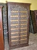 This doors of armoire belong to Havelis of Rajasthan.Beautifully crafted and hand carved in teak. Rich with culture the cabinet belongs to rustic Havelis of from India.The brass and iron on the cabinet door take from the tradition of vastu culture which is the India art of the interior design and provide the grounding element. Features: Rustic Mehrab Door armoire teak wood antique India furniture hand carved., This cabinet has Mehrab arch carved doors. Eclectic addition to your interiors ., Crown molding and carvings add to the classic style of the armoire., This beautiful piece is made of teak wood in an antique warm brown finish with brass and iron accents all over the door., Our hand carved rustic door armoire furniture is uniquely designed, which will gives you affordable solutions for any room in your home and provide years of comfort and enjoyment. more...