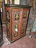 Red Black Floral Painted Antique Wooden Armoire Cabinet India Furniture 50" from Mogulinterior